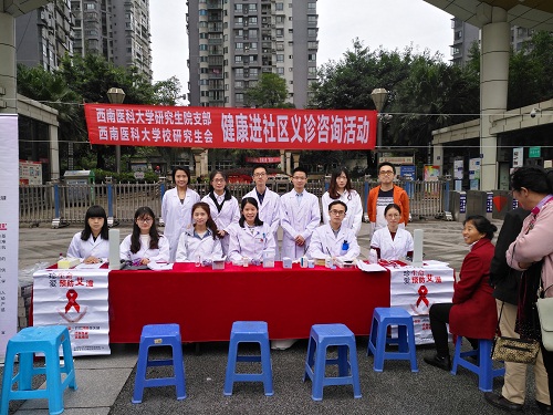 10月23日下午由beats365唯一官网入口官网研究生院党支部、校研究生会主办的“防艾宣传及健康进社区义诊活动”在泸州市龙马潭区新民社区进行。研究生院组织了内科、外科、眼科、肿瘤、病理、口腔等专业的硕士研究生开展防艾宣传及义诊活动。通过对群众提供健康咨询、发放预防艾滋病宣传教育资料、填写艾滋病调查问卷、免费测血压、免费测血糖等多种形式的活动,进一步树立了广大研究生的服务意识,展现了beats365唯一官网入口官网研究生的风采,取得良好效果。