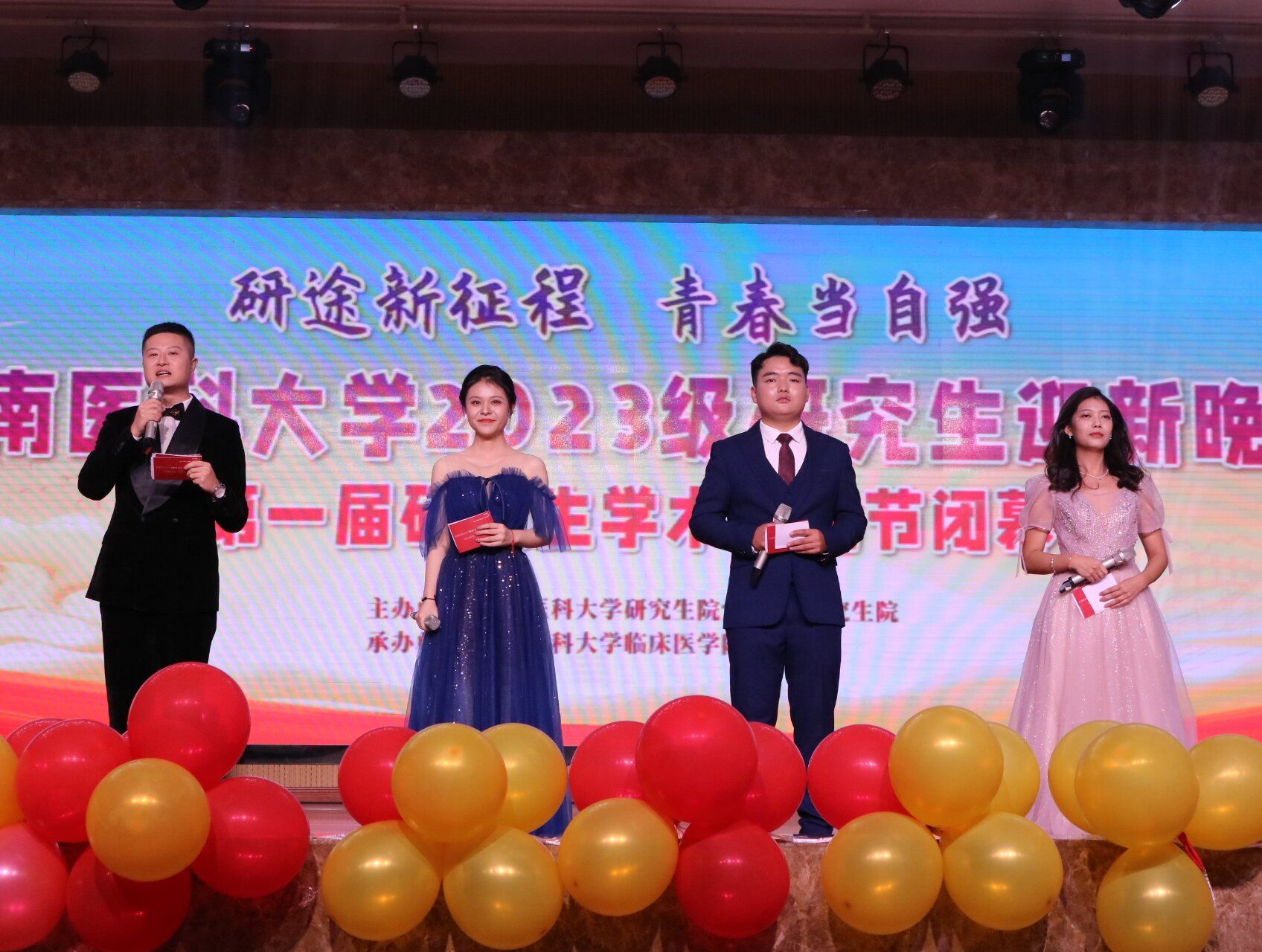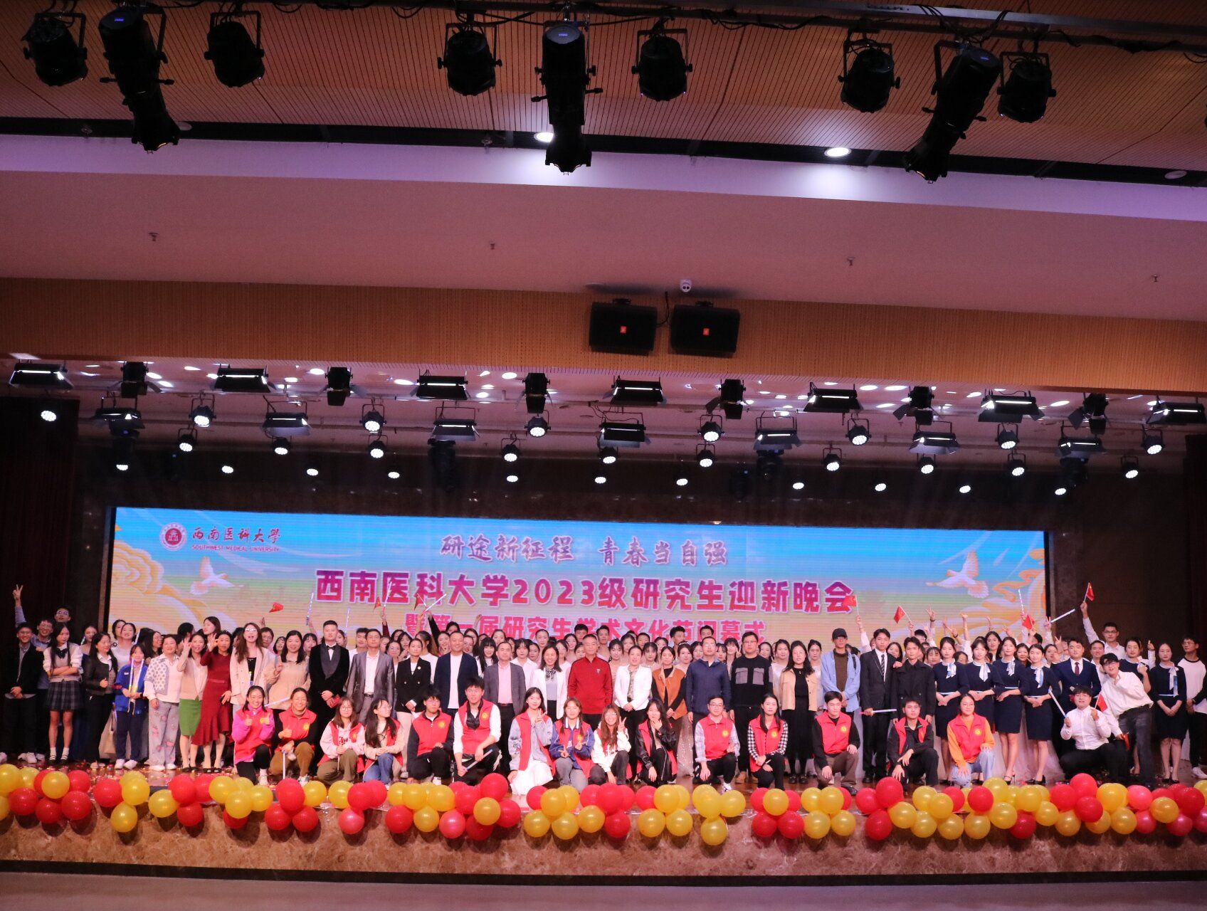 台前幕后的工作人员、辛勤的志愿者、表演同学们为我们在这晚秋之夜奉献了一场无与伦比精彩的演出,大家用歌声唱出对祖国的祝福、对学校的热爱和对自己研究生生涯的无限期望。晚会展现了研究生们青春向上力量和才艺,增进了同学友谊,增强了师生凝聚力。真诚欢迎2023级的研究生们,祝愿大家前程似锦,鹏程万里。