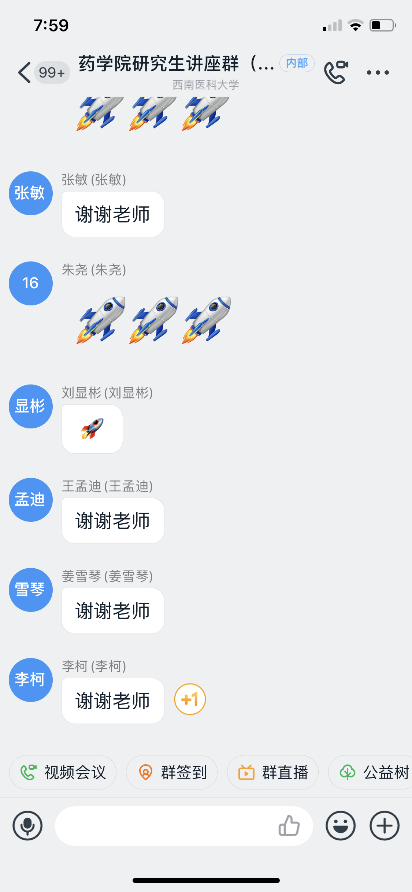 本次讲座采用钉钉平台线上多群联播的方式举办,共计1400人观看,点赞数达45254次,获得了研究生们一致的好评。