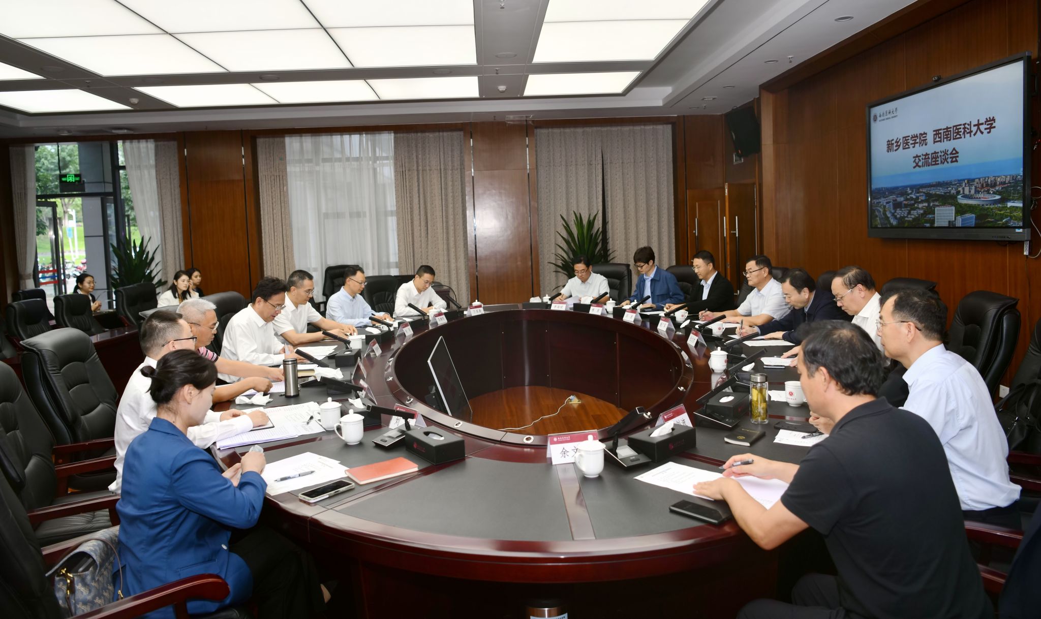 9月25日,新乡医学院党委书记、校长任文杰,副校长王辉,研究生学院、基础医学院、医学技术学院、新乡医学院第一附属医院等负责人一行9人到我校考察交流。